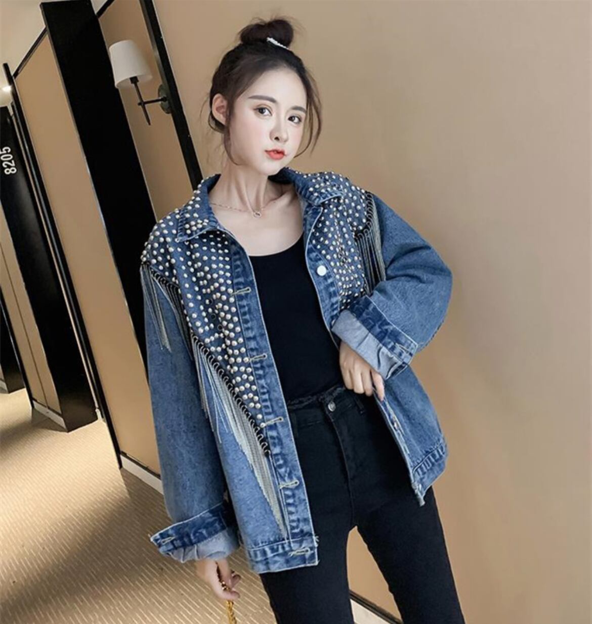 長袖 トップス ゆったりする デニムジャケット タッセル コート