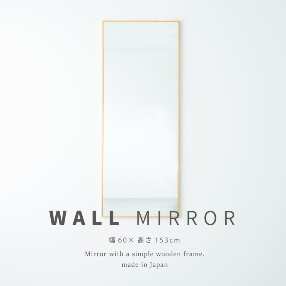 【直送可/送料無料】細枠ウォールミラー 幅60cm◇国産の木目が美しい全身鏡