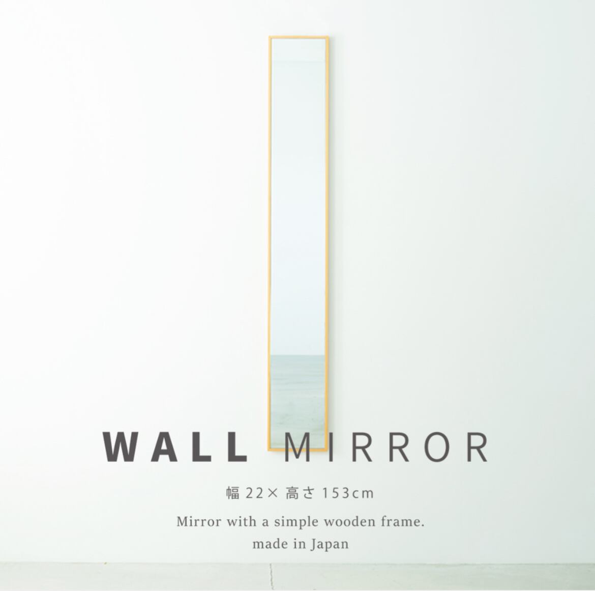 国産の木目が美しい細枠ウォールミラー。幅22cmとコンパクトなサイズながら、全身をしっかりと映し出す大きさです。シンプルでスタイリッシュなデザインなので、どんなインテリアにも馴染みます。