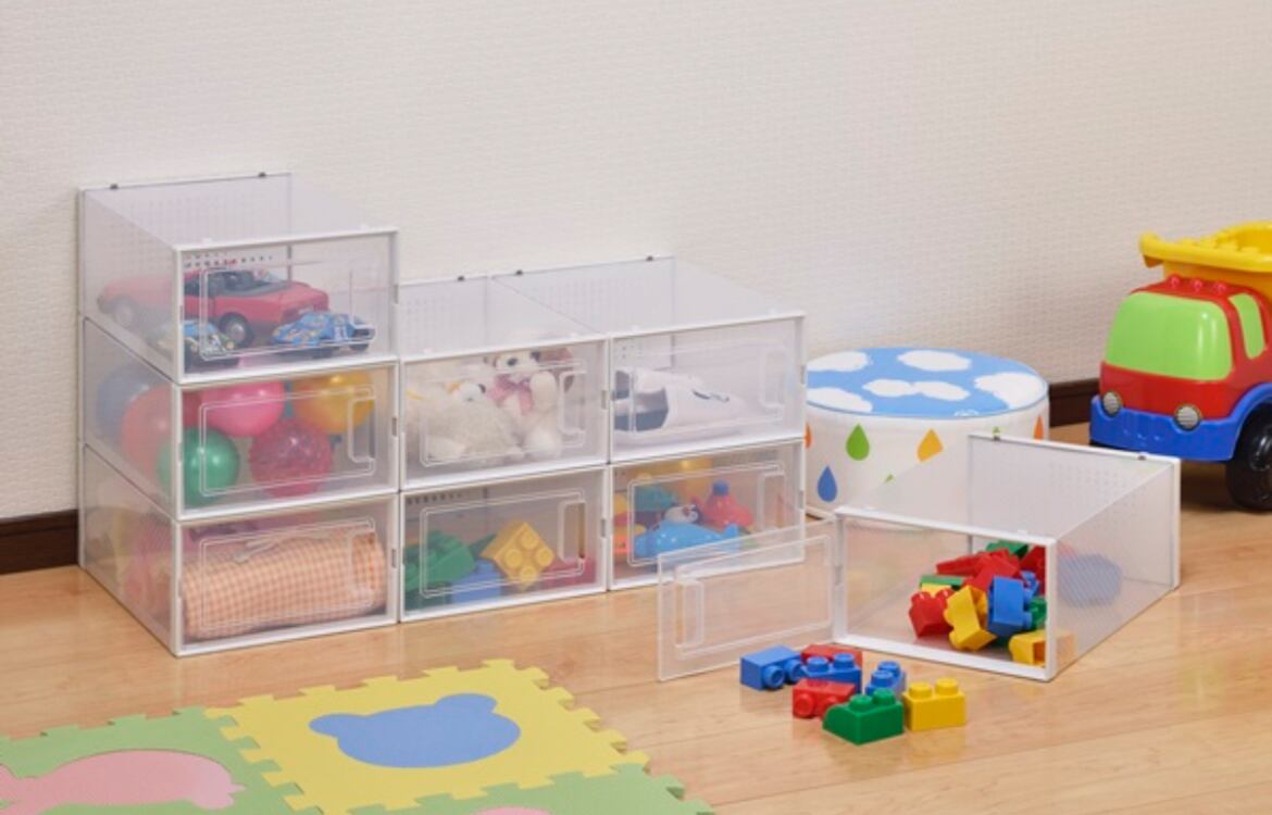 中身が見えるので、靴だけでなく、お子様のおもちゃの収納にもぴったり。